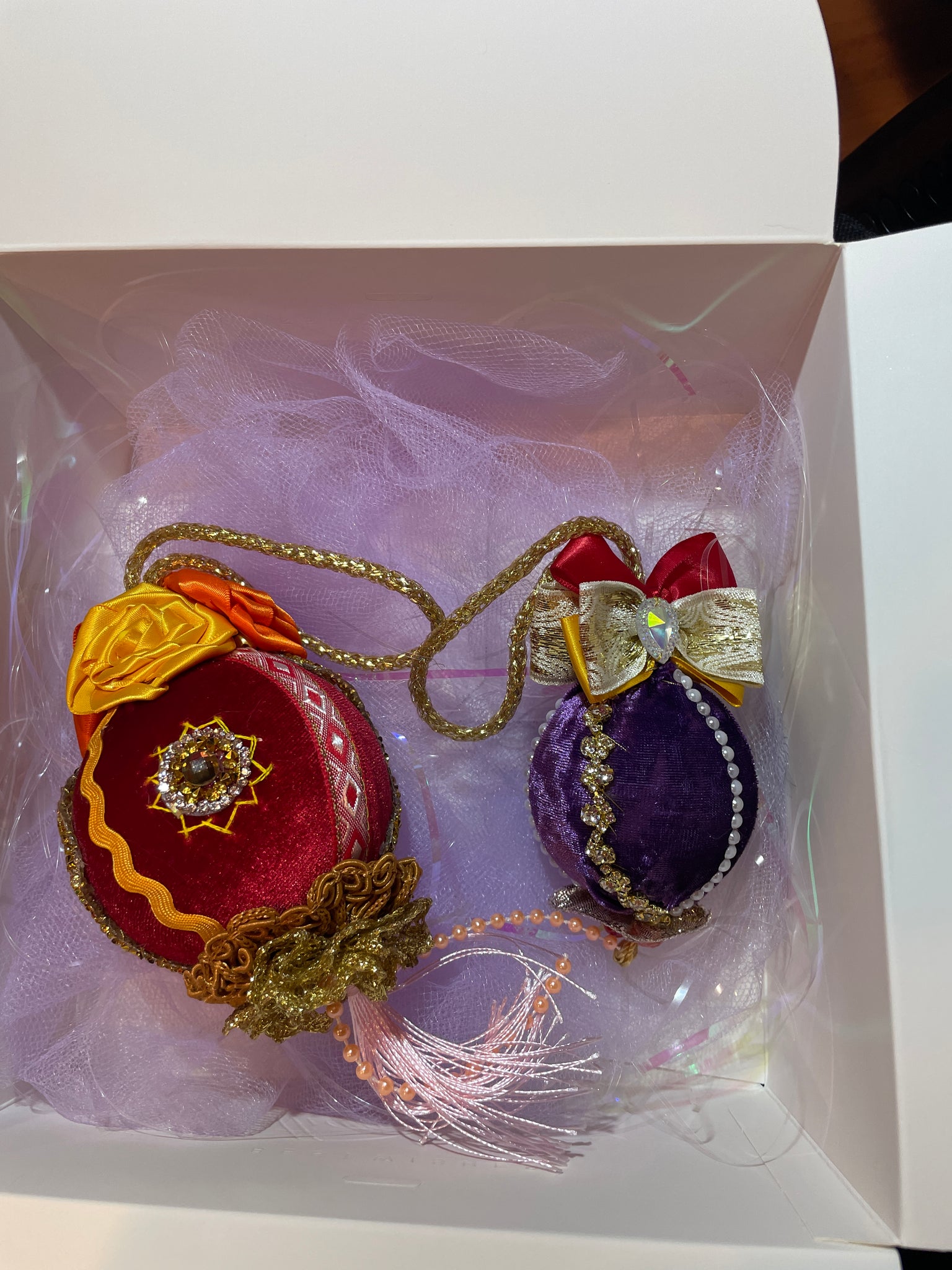 Christmas tree velvet sphere ornaments, set of 2 balls, handmade by Anna Razgulova (koshmariki.org)