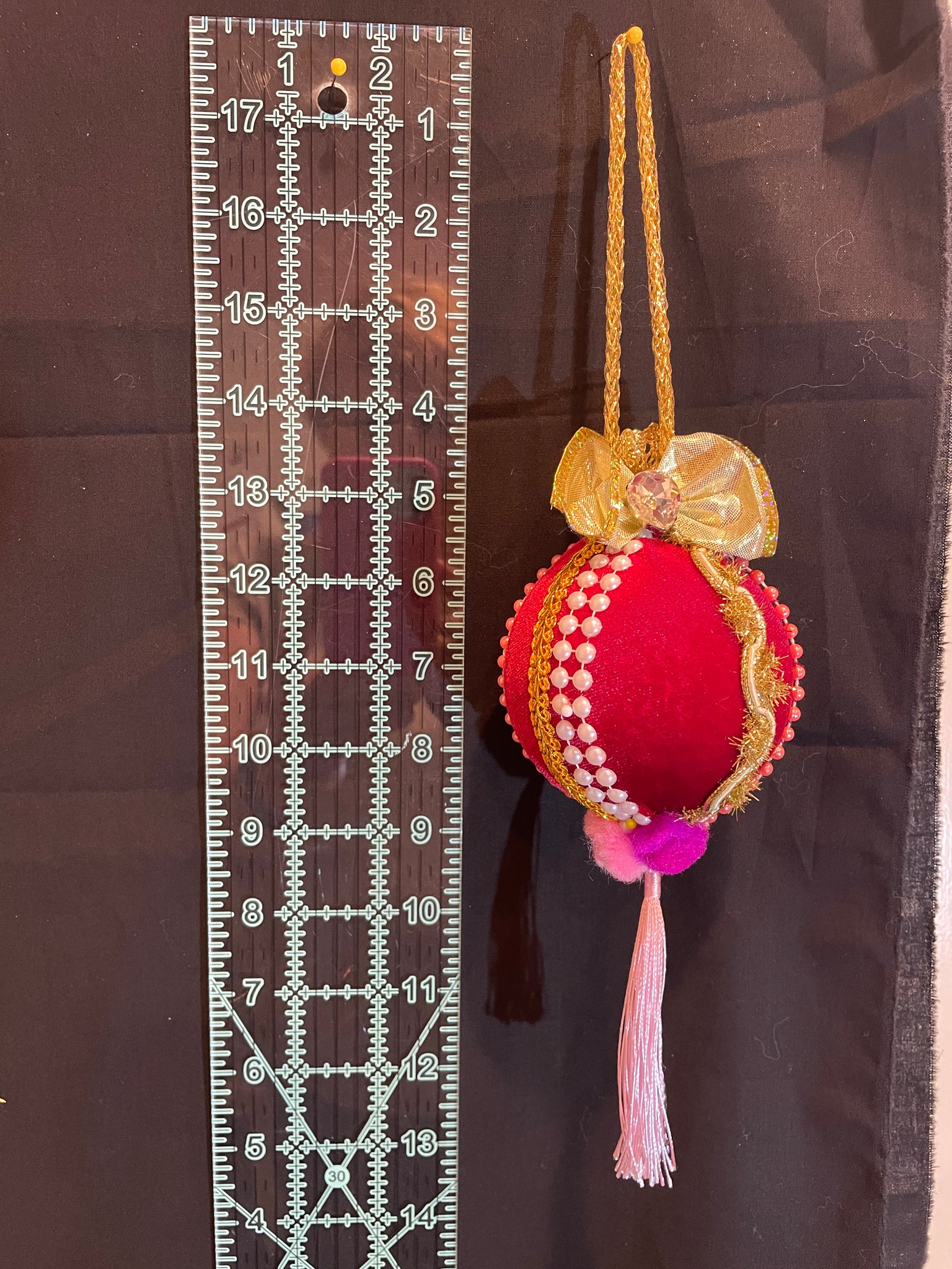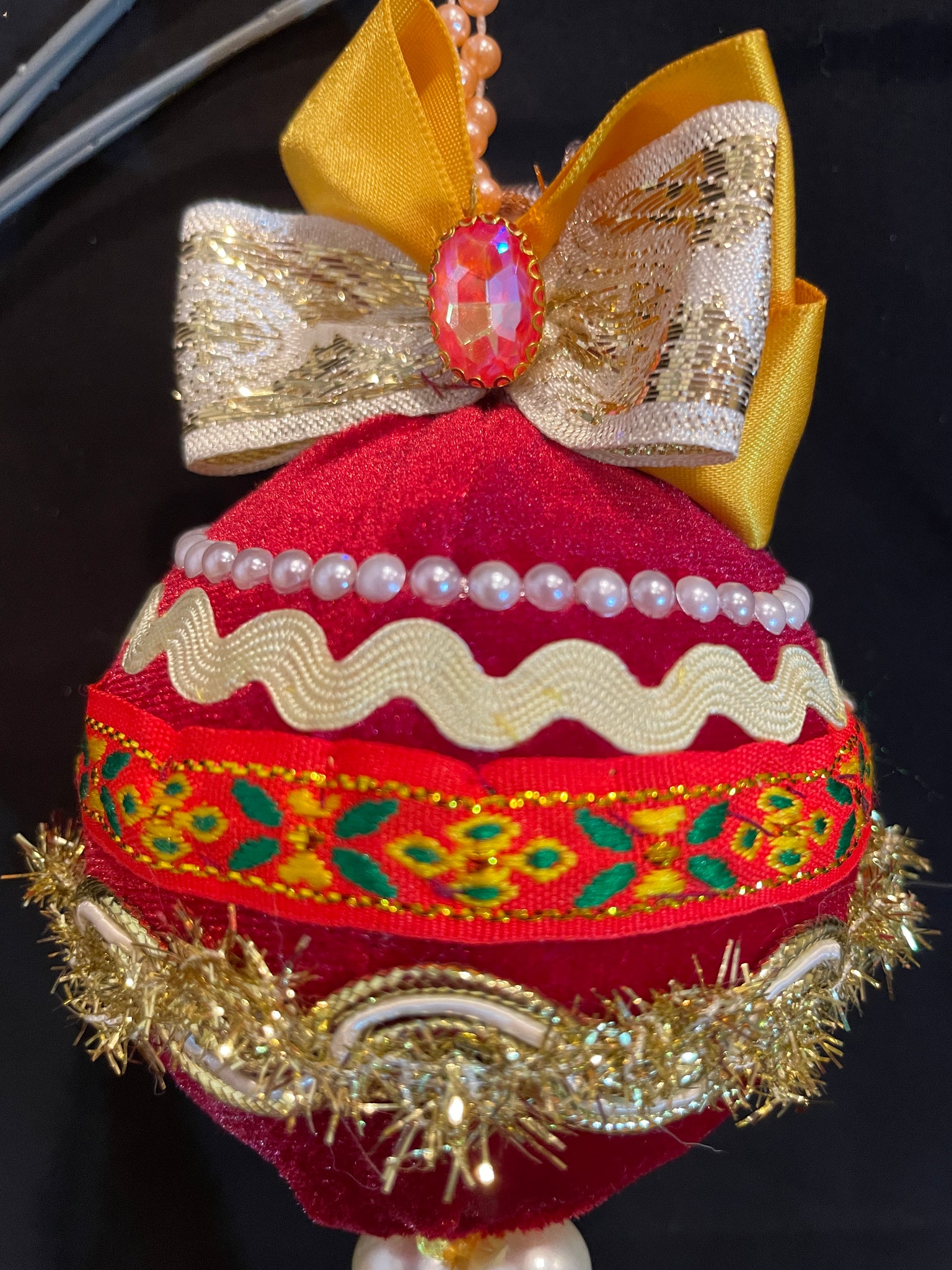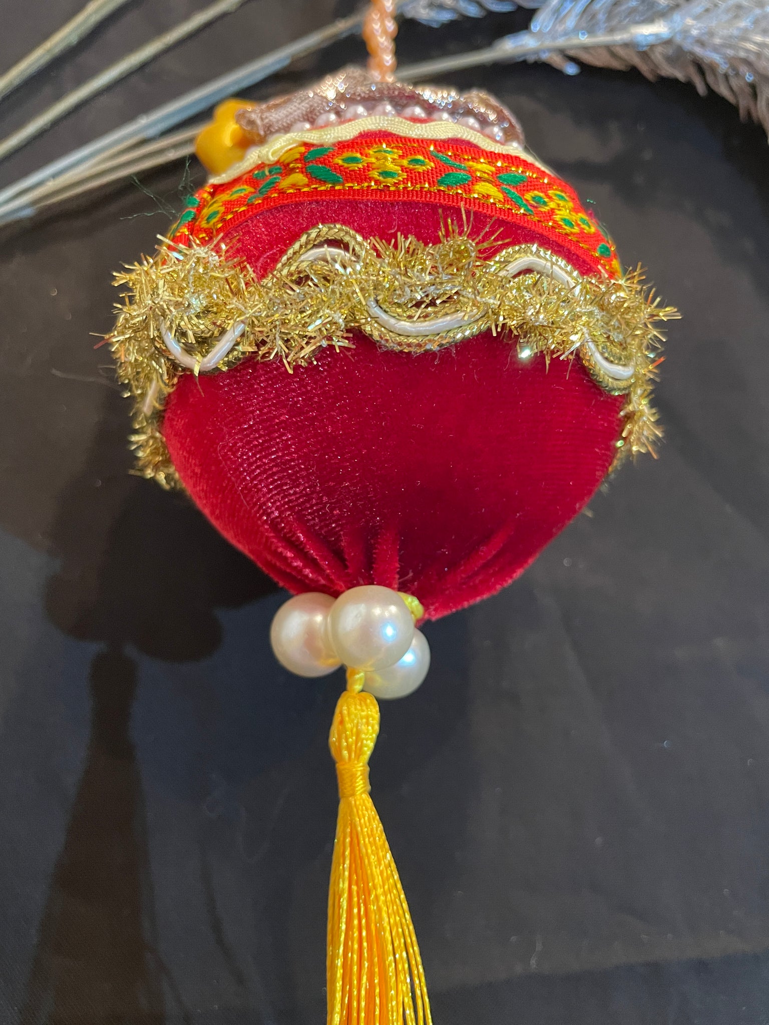 Christmas tree velvet sphere ornament set #4, handmade