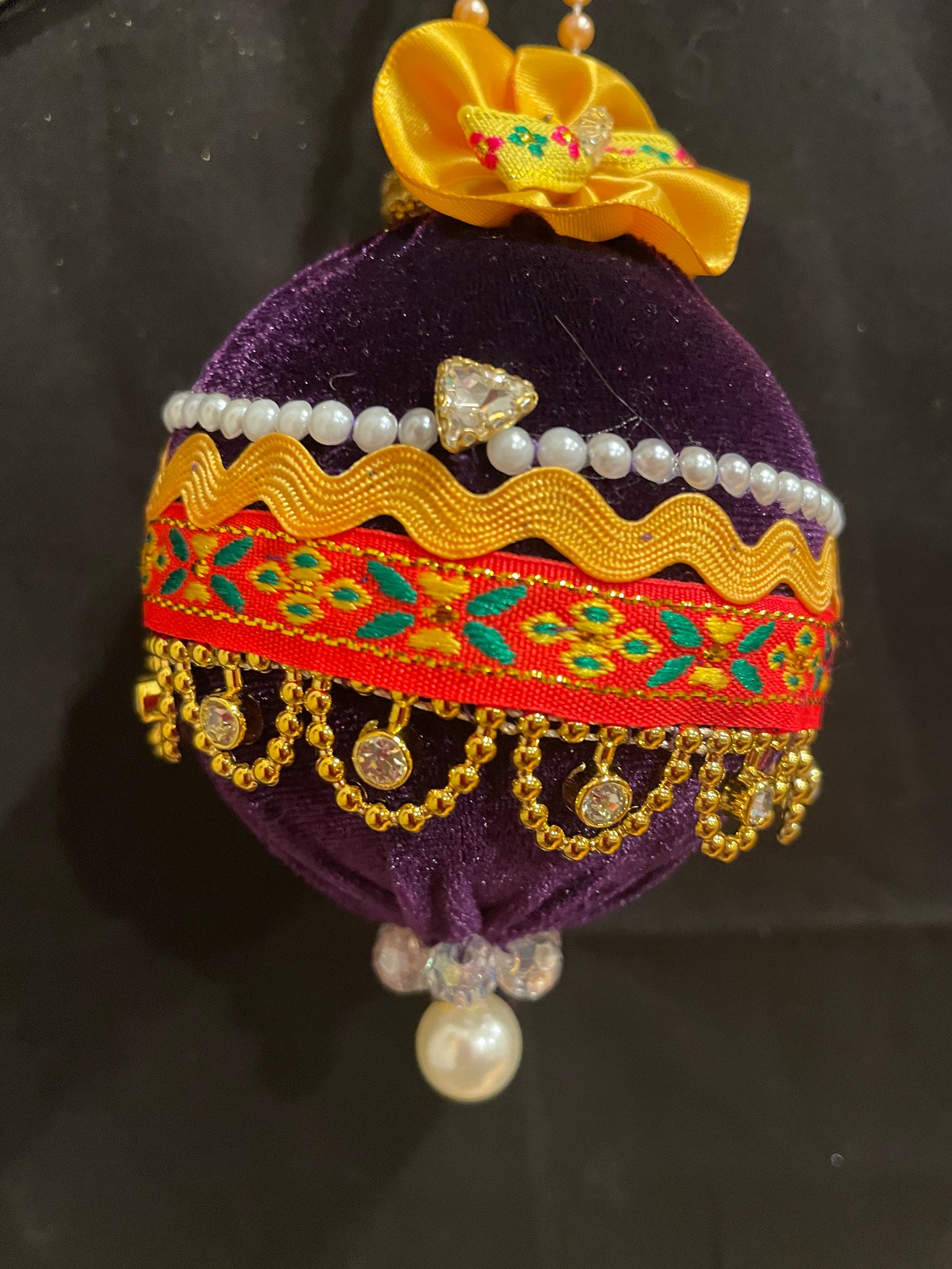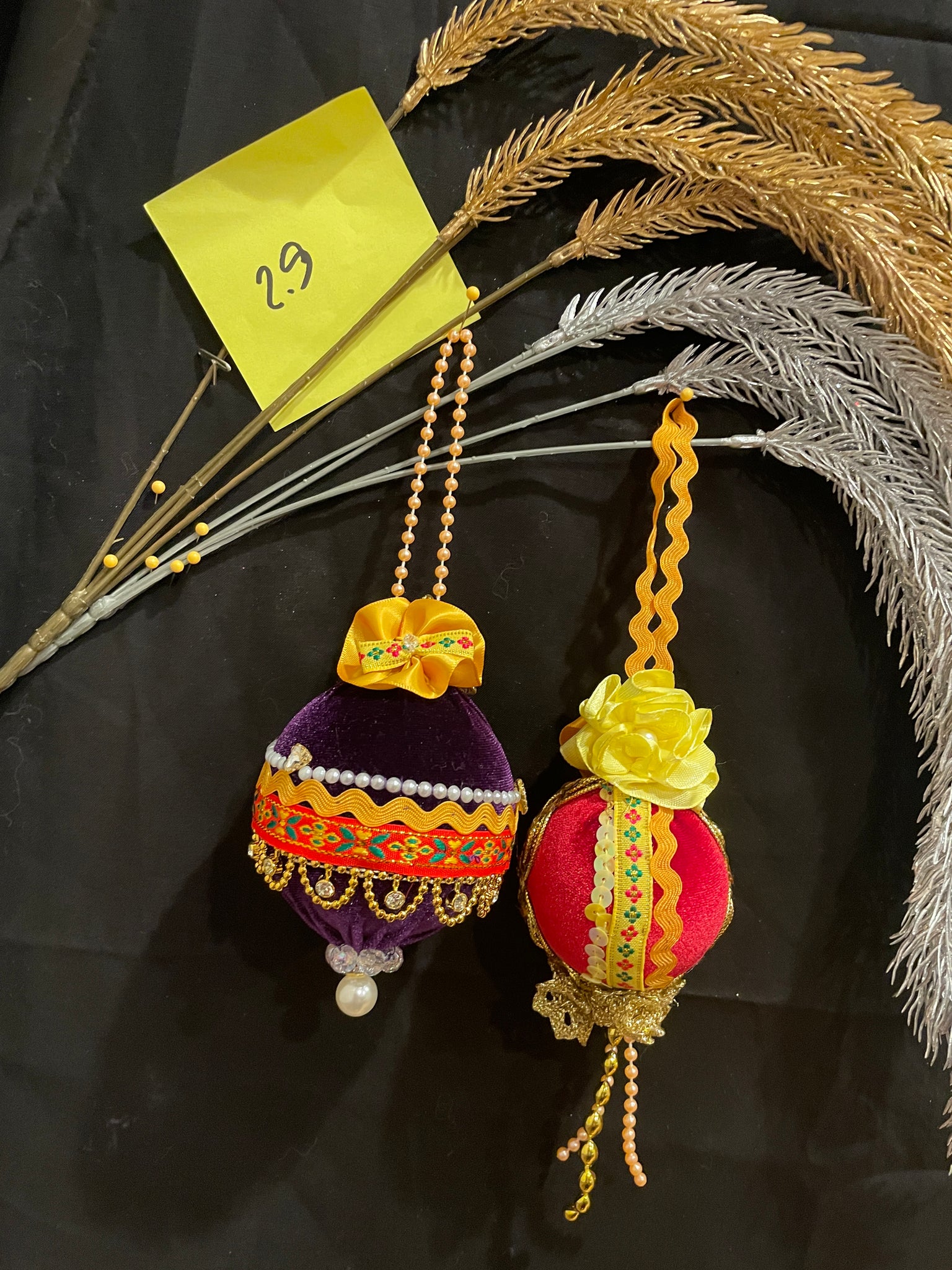 Christmas tree velvet sphere ornaments, set of 2 balls, handmade by Anna Razgulova (koshmariki.org)