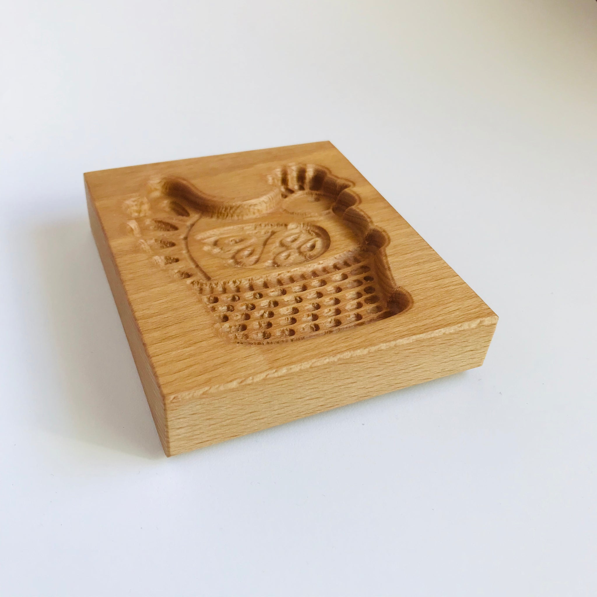 Wooden gingerbread form, handmade in Belarus. Dimensions 3 3/4 in. x 4 1/4 in.